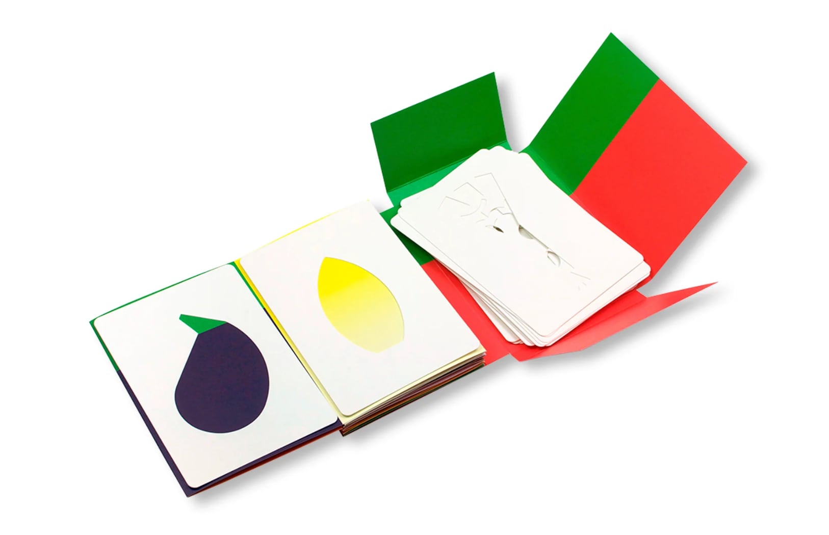 本を広げて、色のついたページの上にダイカットカードを並べたり並べ替えたりして遊びます。